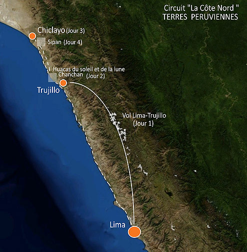 Quatre jours d’excursion à caractère culturel sur la route Moche de la Côte Nord du Pérou à la découverte d’importantes civilisations (Mochica, Chimú, Lambayeque….), de Chan Chan, le plus grand site archéologique d’Amérique du sud, des premières villes coloniales telles que Trujillo, les plages de Huanchaco aux vagues surfées par les Caballitos del mar, et de la sensationnelle Tombe du Seigneur de Sipán aux environs de Chiclayo.